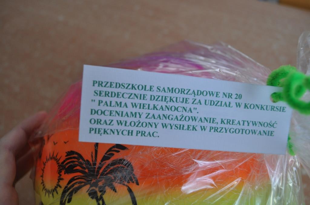 Z radością informujemy, że Marcelina i Mikołaj z grupy II zdobyli wyróżnienie w Międzyprzedszkolnym Konkursie „Wielkanocna Palemka”, zorganizowanym przez Przedszkole Samorządowe nr 20.