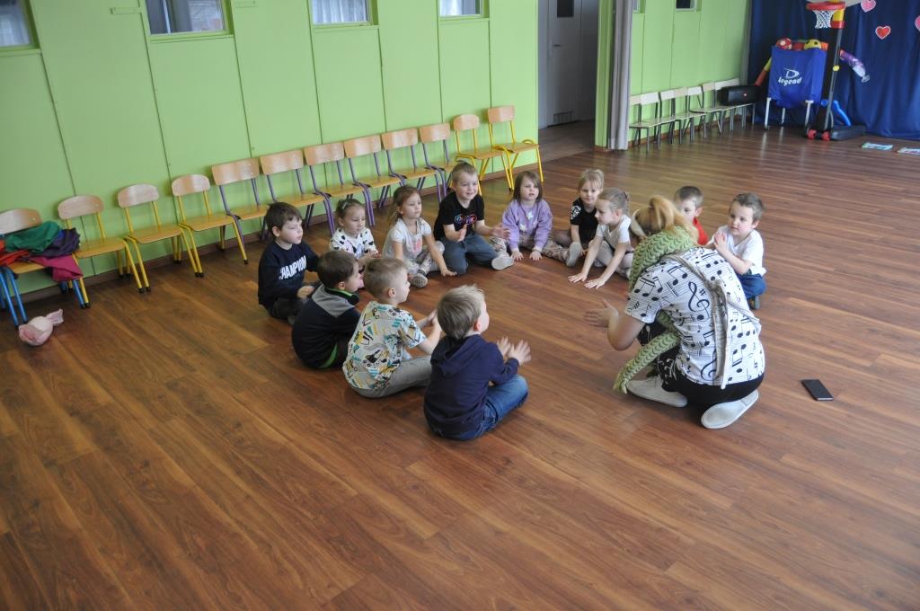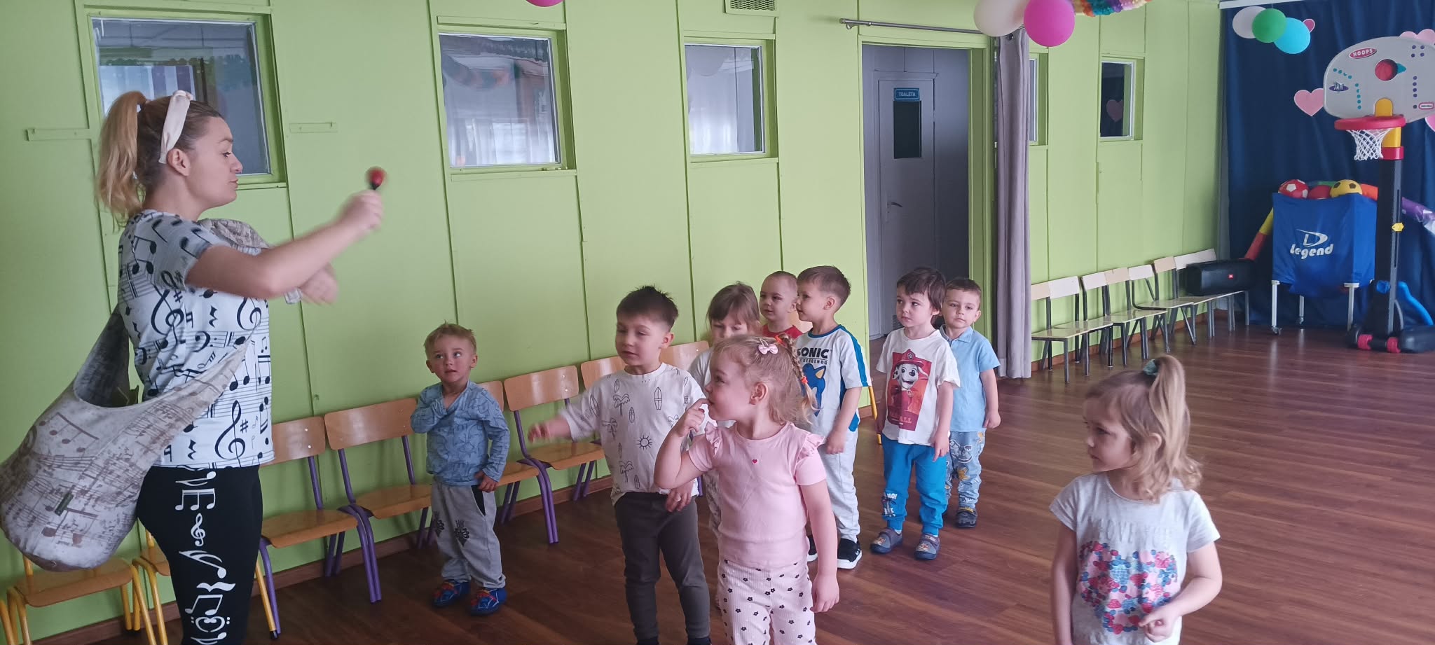 Podczas warsztatów przedszkolaki poznawały zasady zdrowego stylu życia. Rozmawiały o jedzeniu owoców i warzyw, dbaniu o higienę osobistą oraz o tym, jak ważna jest codzienna aktywność fizyczna. Wszystkie te treści zostały przedstawione w atrakcyjnej, muzycznej formie, co sprawiło, że dzieci chętnie angażowały się w proponowane zadania.