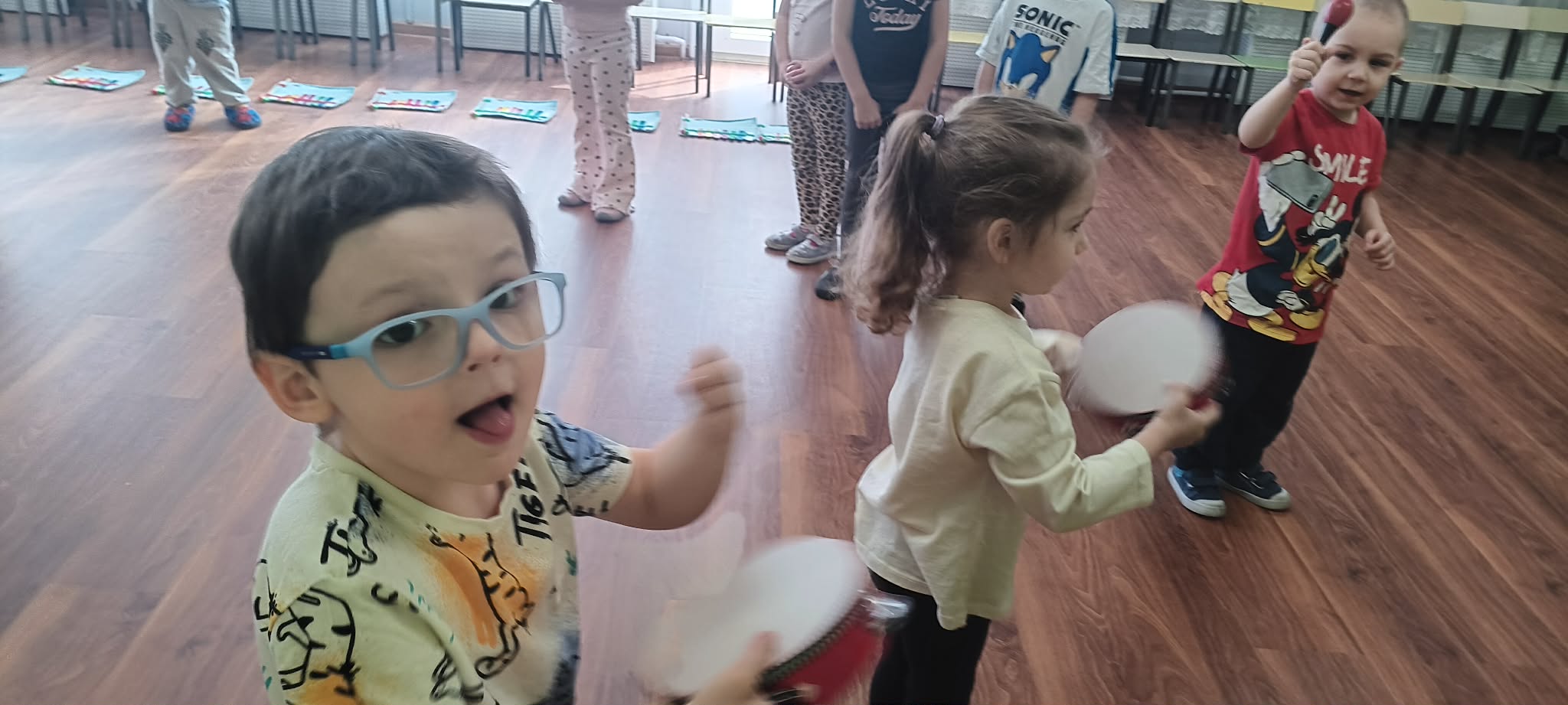 Rytmiczne zabawy, taniec i wspólne muzykowanie wywołały wiele radości, a Smok Obibok stał się sympatycznym przewodnikiem po świecie zdrowych nawyków. Warsztaty nie tylko dostarczyły dzieciom świetnej zabawy, ale również w przystępny sposób utrwaliły ważne treści prozdrowotne.