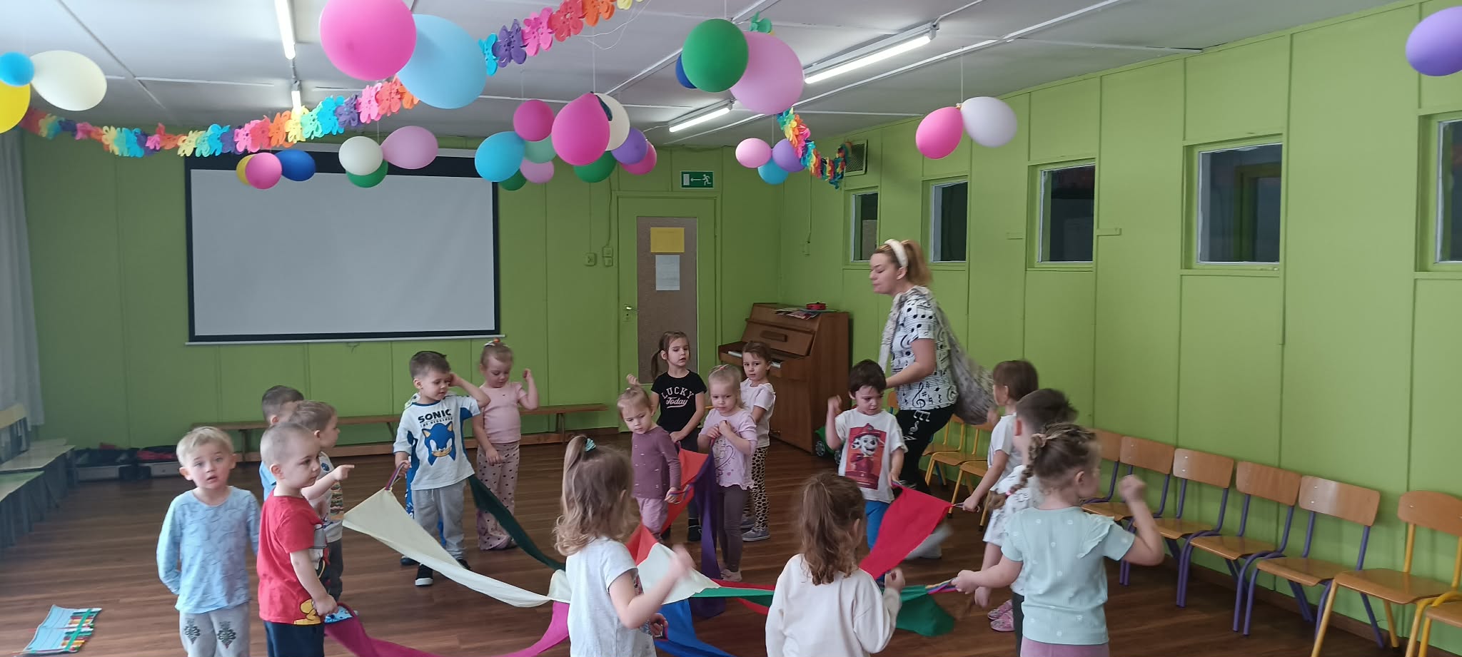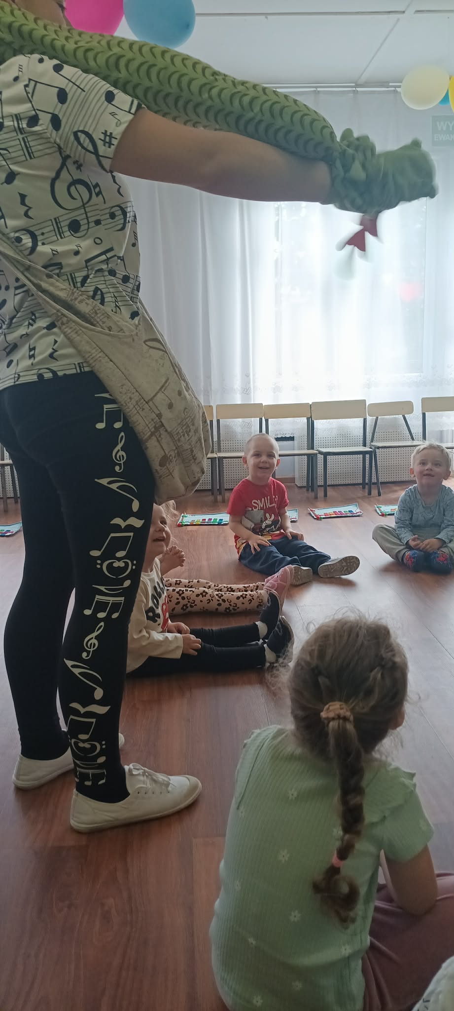 Marcowe warsztaty muzyczne w naszym przedszkolu odbyły się w oparciu o motywy „Przygód Smoka Obiboka” i okazały się niezwykle kreatywnym oraz pełnym energii spotkaniem. Zajęcia łączyły w sobie elementy edukacji zdrowotnej, aktywnego słuchania muzyki, rytmiki, zabaw ruchowych i tańca, dzięki czemu dzieci mogły uczyć się poprzez ruch, dźwięk i dobrą zabawę.